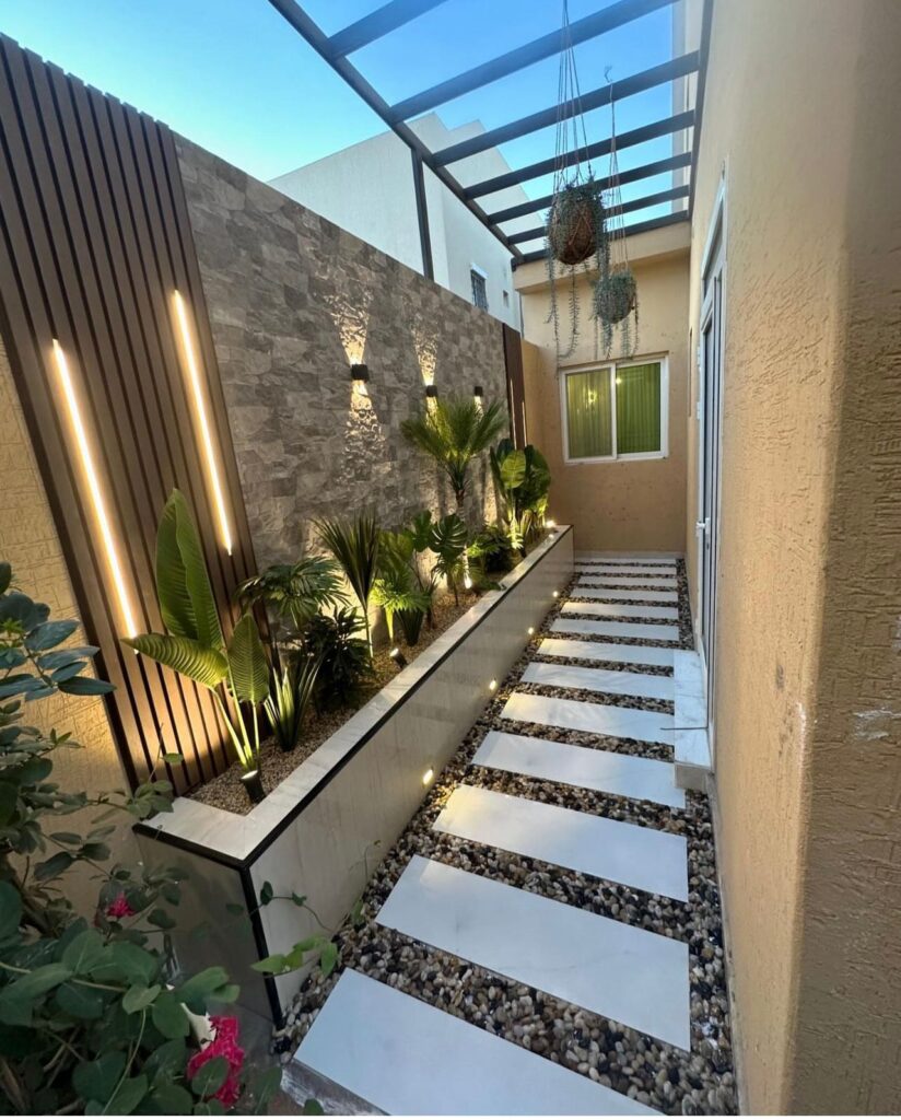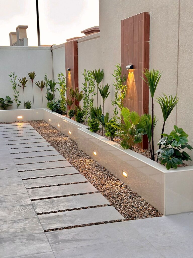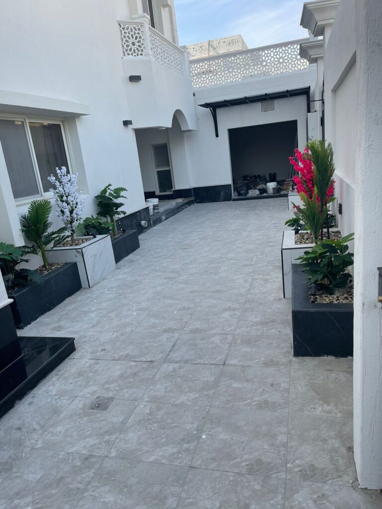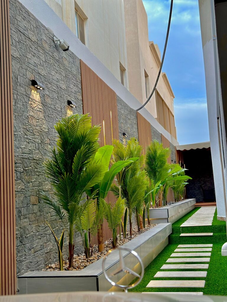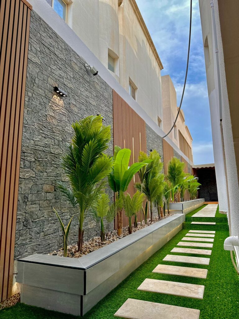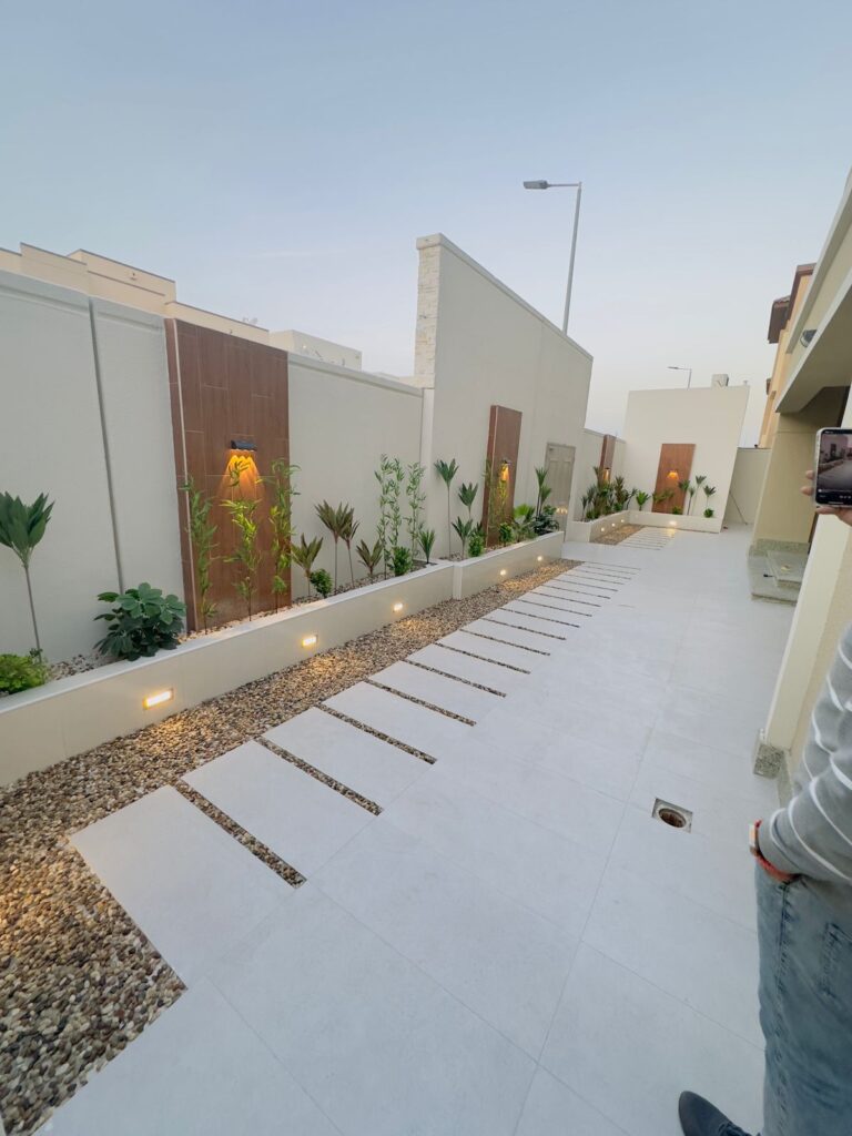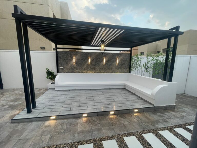 استمتع بأجواء خارجية مريحة تجمع بين الأناقة والخصوصية مع تصاميم زهرة المملكة لتنسيق الحدائق بالأحساء.