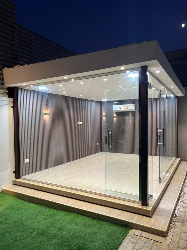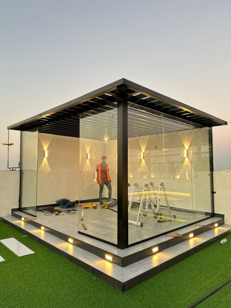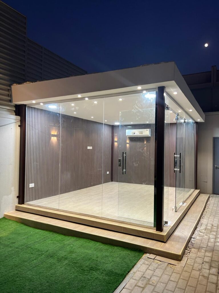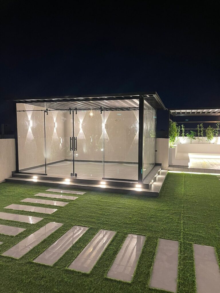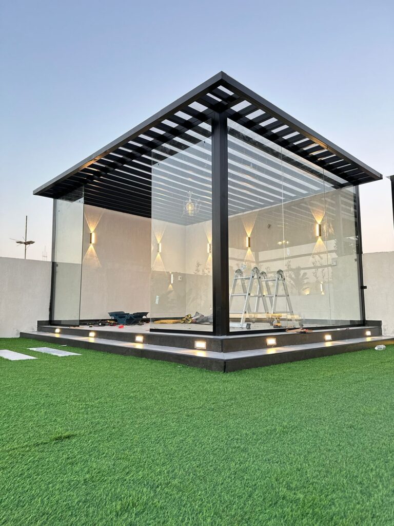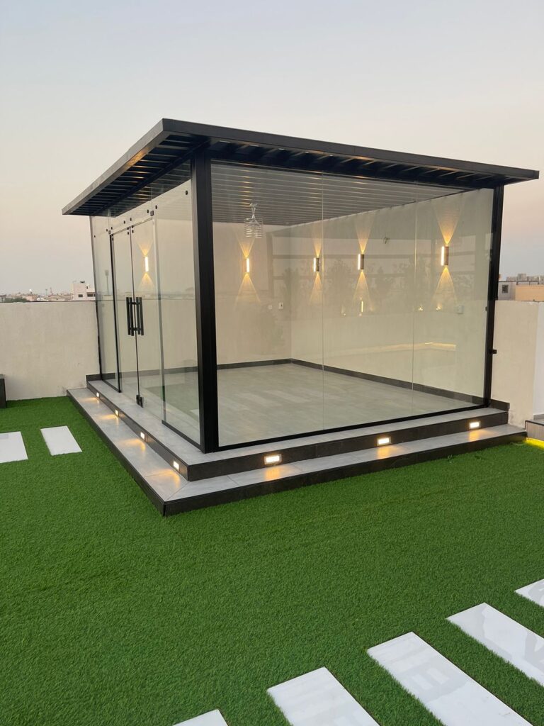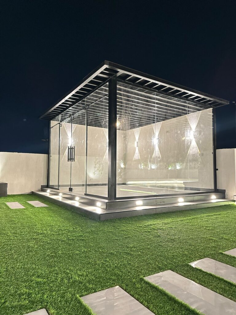 في زهرة المملكة لتنسيق الحدائق بالأحساء نصمم الغرف الزجاجية بأعلى معايير الجودة والفخامة، لتستمتع بإطلالة خلابة على حديقتك طوال العام.