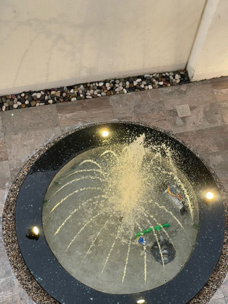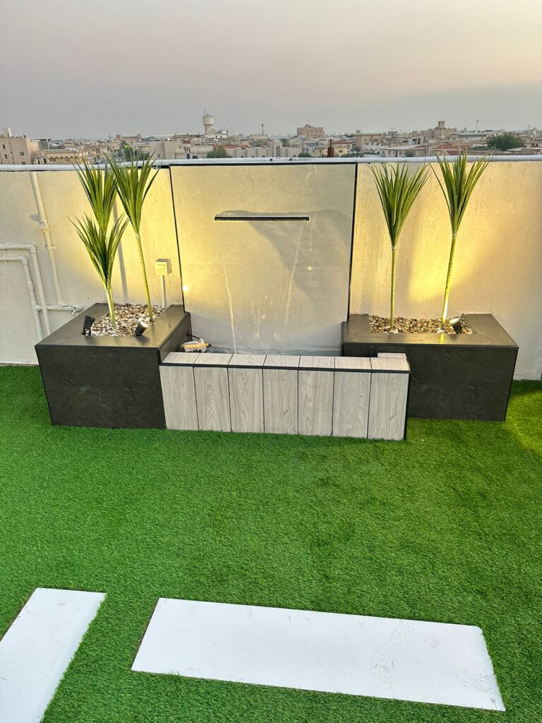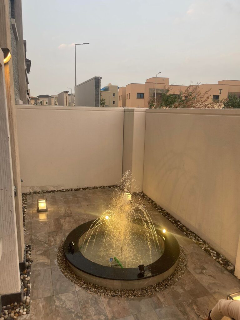 اجعل صوت الماء جزءًا من جمال حديقتك مع تصاميم زهرة المملكة لتنسيق الحدائق بالأحساء.