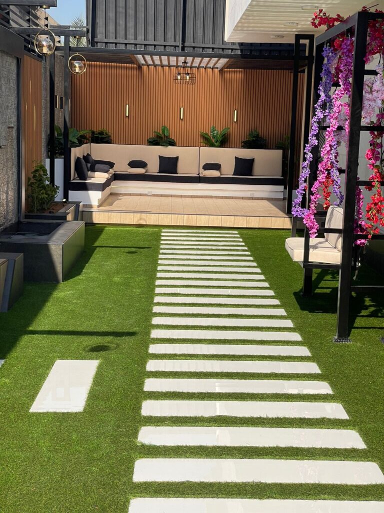 🌿 تنسيق حدائق بالعشب الصناعي – جمال يدوم دون عناء