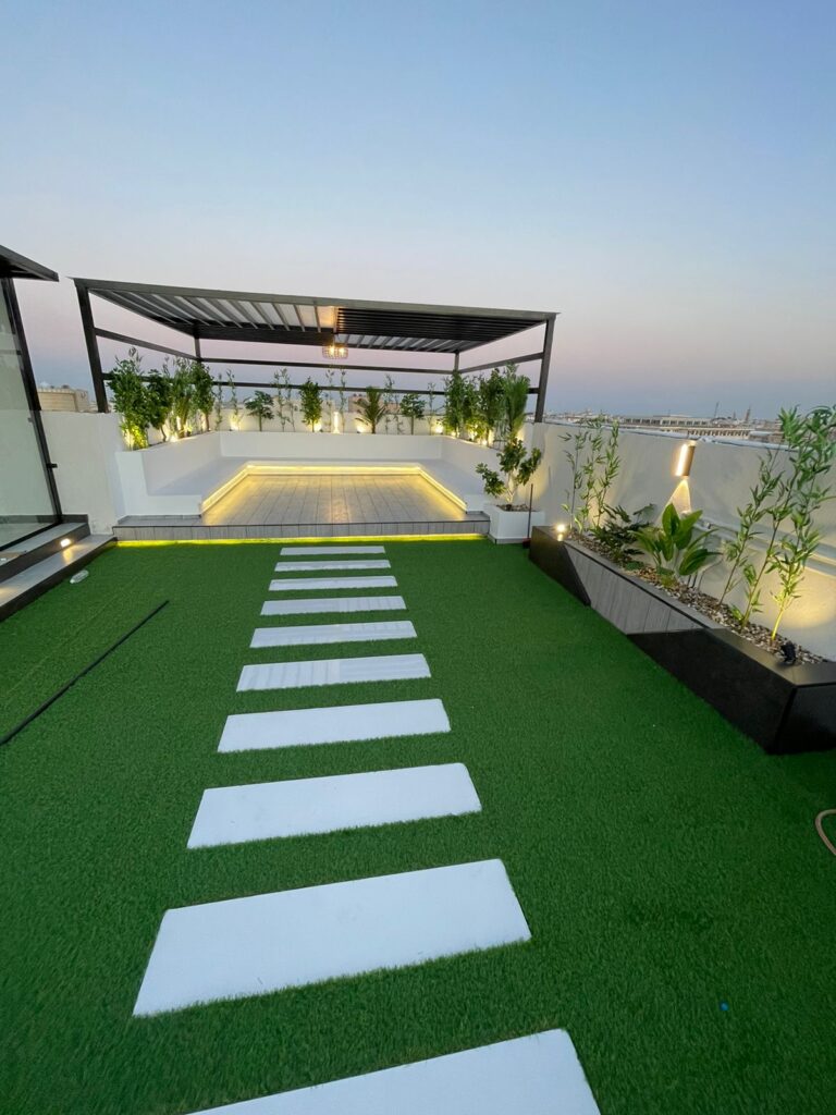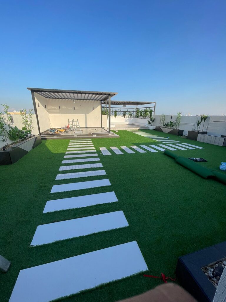 نستخدم أجود أنواع العشب الصناعي بمظهر طبيعي ولمسة ناعمة تضيف فخامة وأناقة لكل مساحة — سواء للفلل، أو المدارس، أو الاستراحات، أو الأسطح.