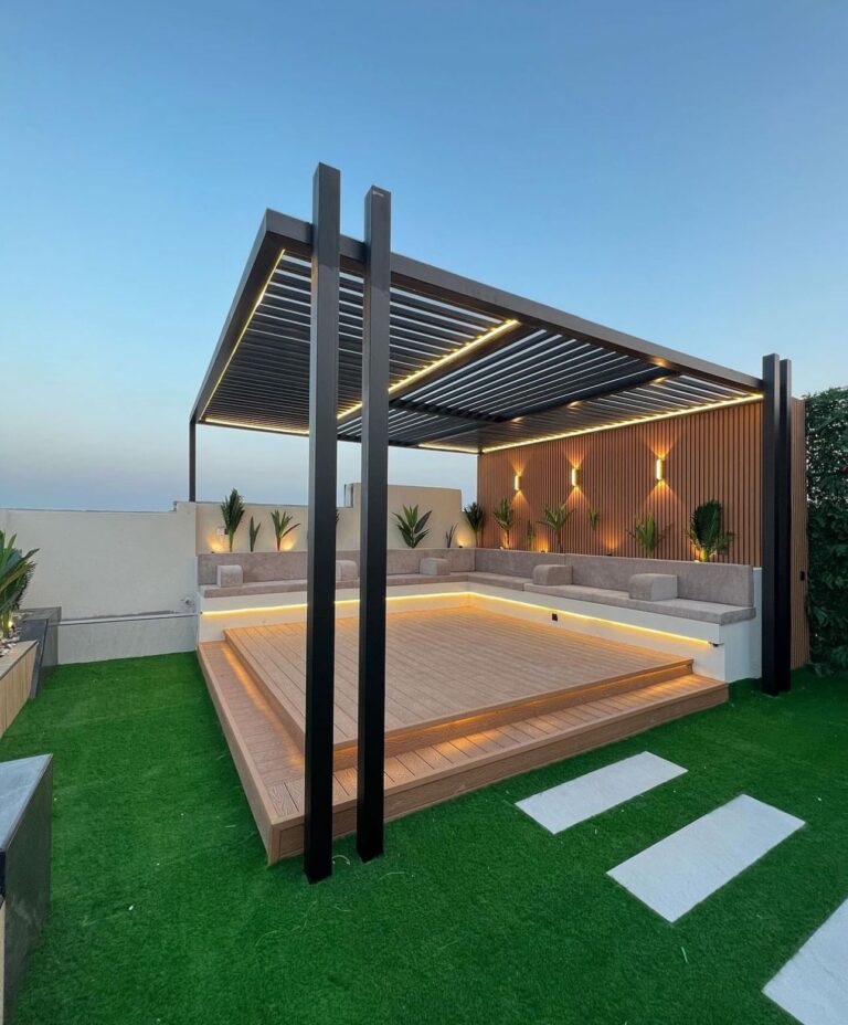 تصميم الجلسات الخارجية والمظلات – رفاهية تحت ظلال الطبيعة
